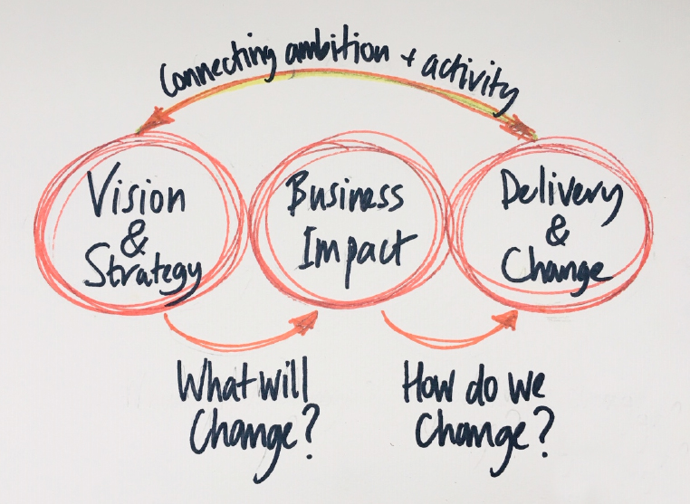 Building clarity and understanding about the future: illustrating the strategic impact on the business, identifying what will change.